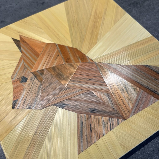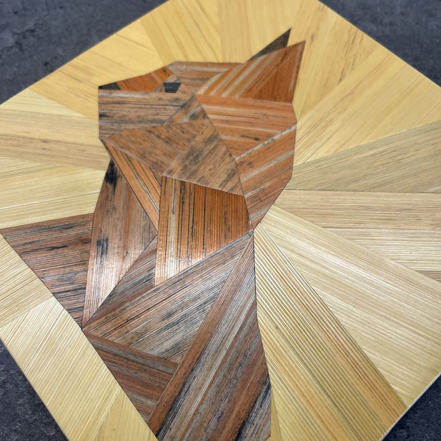 Cet objet est composé de brins de paille teintés, fendus et soigneusement aplatis sur la longueur avec un plioir. Coupés, collés et assemblés bord à bord avec précision... / La Marqueterie de Paille se distingue par sa brillance naturelle riche en silice ou la lumière réfléchissante produit des effets irisant uniques.