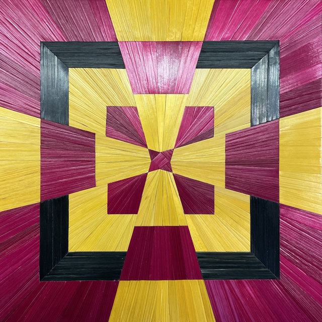 Cet objet est composé de brins de paille teintés, fendus et soigneusement aplatis sur la longueur avec un plioir. Coupés, collés et assemblés bord à bord avec précision... / La Marqueterie de Paille se distingue par sa brillance naturelle riche en silice ou la lumière réfléchissante produit des effets irisant uniques.